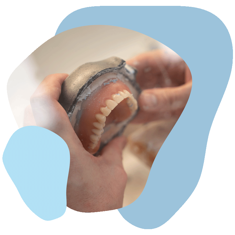 Helprotesen erstatter alle tænder i en kæbehalvdel og sidder fast ved hjælp af det naturlige vakuum, der dannes mellem protese og gumme.